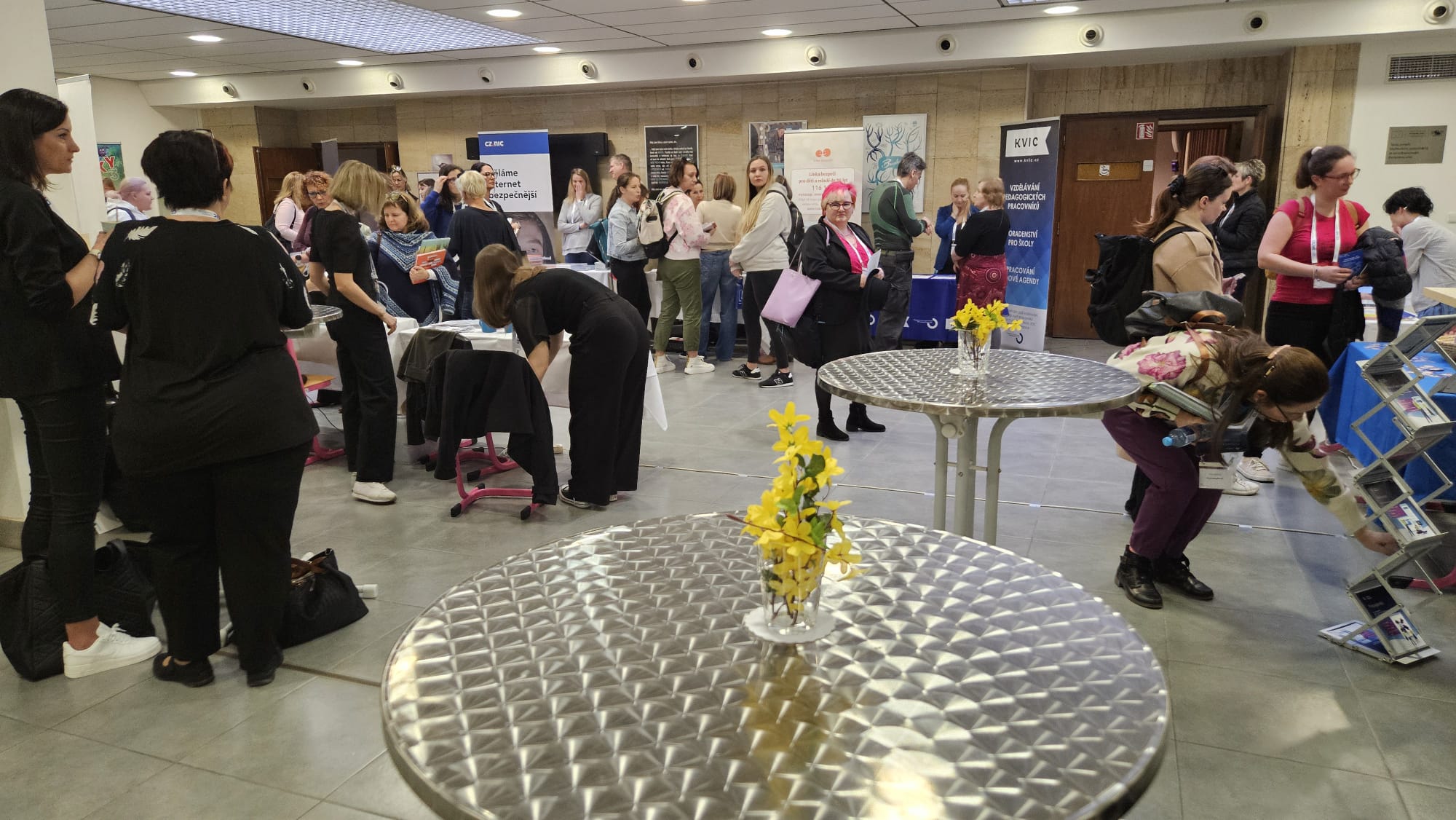Učitelé měli také možnost individuálních konzultací. Přímo na místě mohli diskutovat s odborníky u stánků ve foyer, klást otázky a odnést si konkrétní materiály do svých hodin.
