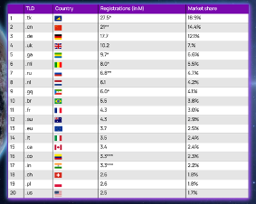 Pokud se podíváme na počty evropských ccTLD, tak .cz s počtem 1 515 860 domén těsně unikl zápis do TOP 10.